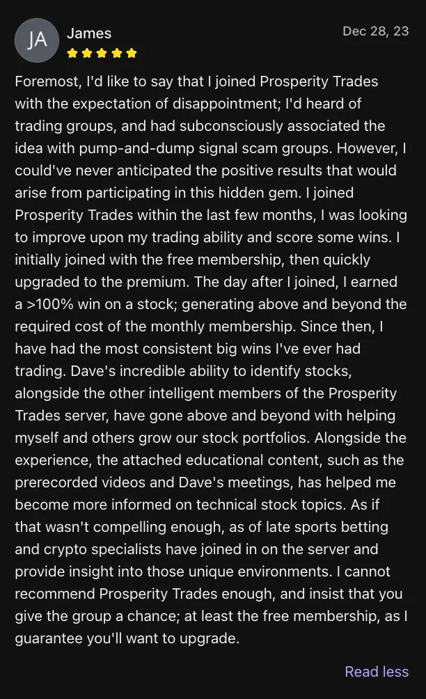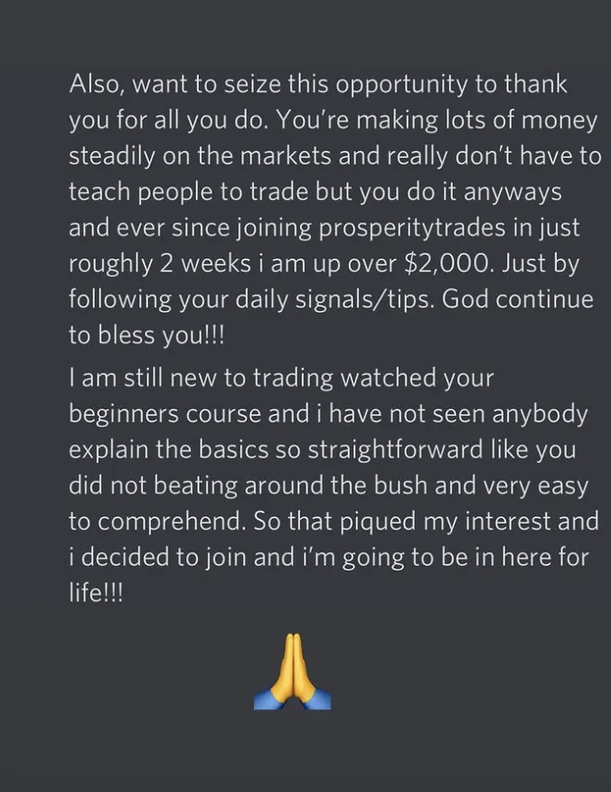 INCOME DISCLAIMER: Although we strive to accurately represent the services and/or products on this website, Prosperity Trades™ makes no guarantees regarding future earnings or income, or that you will make any specific amount of money, or any money at all, or that you will not lose money. Earnings or income statements, or examples of earnings or income, represent estimates of what you may earn; however, there is no promise or guarantee that you will achieve the same level of earnings or income. There is no assurance that any prior success or past results regarding earnings or income will indicate your future success or results.
